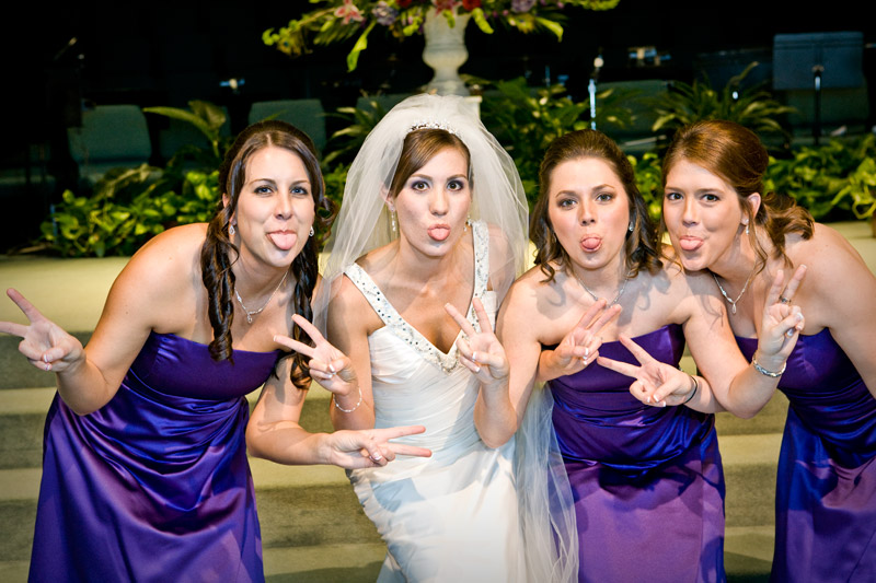 ♥ Will your photographer make this day fun for you and everyone involved? Having fun is what it is all about 🙂 Here is a great example of a bride and bridesmaid having fun at First Baptist Church of Katy.